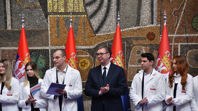 Predsednik Srbije Aleksandar Vučić obratio se na svečanom prijemu povodom dodele ugovora o radu najboljim diplomcima medicinskih fakulteta i srednjih medicinskih škola, istakavši da je ovo već peti ili šesti put da prisustvuje ovakvim manifestacijama.