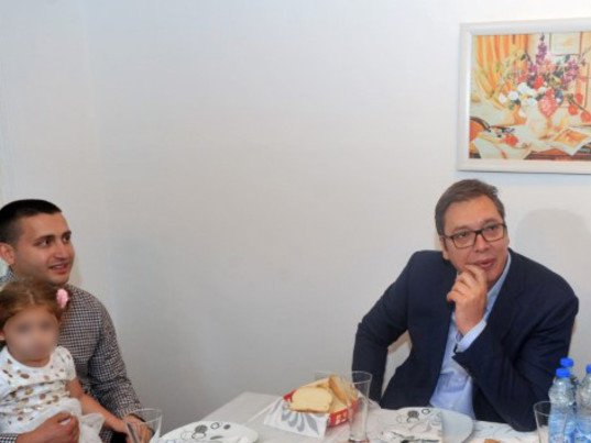 - Da vi budete bogatiji, da vam deca budu živa i zdrava, da ih bude mnogo više nego što ih imamo danas...Sve najbolje vam želim i vidimo se uskoro nekom sličnom prilikom. Hvala vam - rekao je Vučić.
