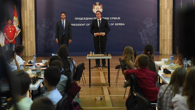 Povodom Svetskog dana šaha, predsednik Srbije Aleksandar Vučić ugostio je mlade šahiste Srbije, a potom se obratio medijima.