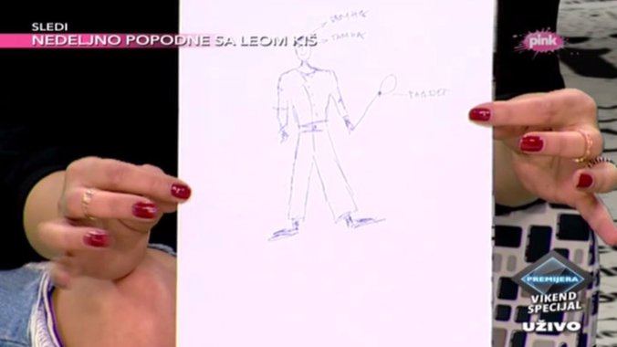 Dečka nemam, ali zamišljam ga - rekla je Rada u emisiji ''Premijera - Vikend Specijal'', a onda je voditeljski par zamolio koleginicu da nacrta svog idealnog muškarca, što je ona i učinila.