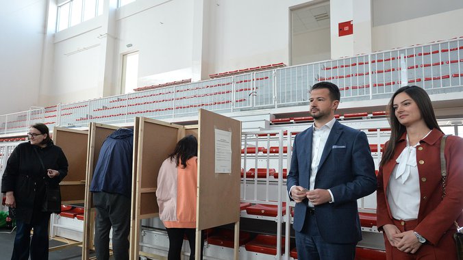 Milena se juče pojavila zajedno sa suprugom tokom glasanja u Podgorici, a plenila je prirodnom lepotom i elegantnim, a opet efektnim izdanjem - tamnocrvenim odelom i belom košuljom.