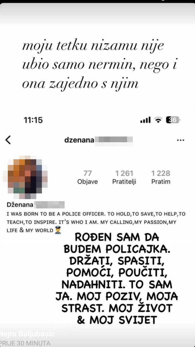 Porodica nesrećne žene je direktno optužila policajku da je otkrila Sulejmanoviću da se Nizama krila kod tetke. Jedna rođaka objavila je i fotografiju policajke.