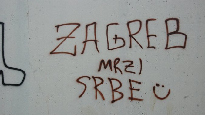 Jedan čitalac hrvatskog portala Slobodna Dalmacija fotografisao je sramotne grafite iz grada Sinja koji "krase" zidove nedaleko igrališta u sklopu Veteranskog centra.