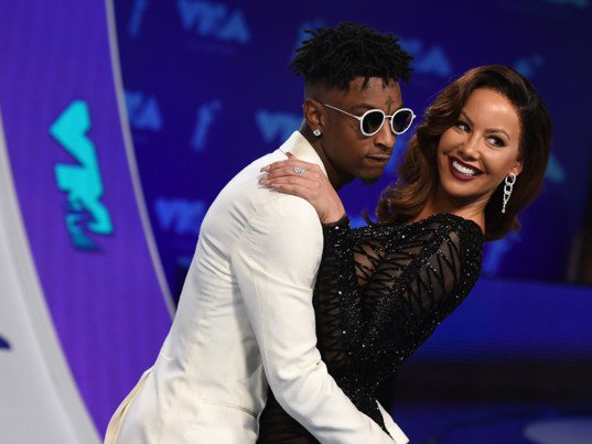 Naime, ona je odlučila da za ovu priliku stavi smeđu periku, a sa sobom je povela i svog dečka, repera 21 Savaža.
