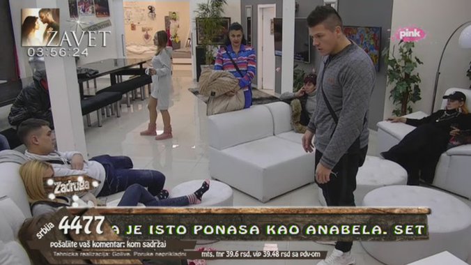 Mogao si da budeš sa pet devojaka, a da ispadneš šmeker! Sad ima da ćutiš, da ti ja objasnim jednu stvar! Dečko, da li znaš šta je tvoja majka radila meni?! Ti to ne znaš! Ne znaš naslove, ne znaš neke priče! Čeka te kolaž svih naslova! Malo da čitaš sve ono što sam ja čitala, zbog tebe. Ja sam ti uvek bila najbolji prijatelj! Uvalili su ti svi kosku i ti im i dalje veruješ. Ja kada sam ušla ovde sa Anabelom, gledao si me u oči i lagao! - izjavila je Kristina.