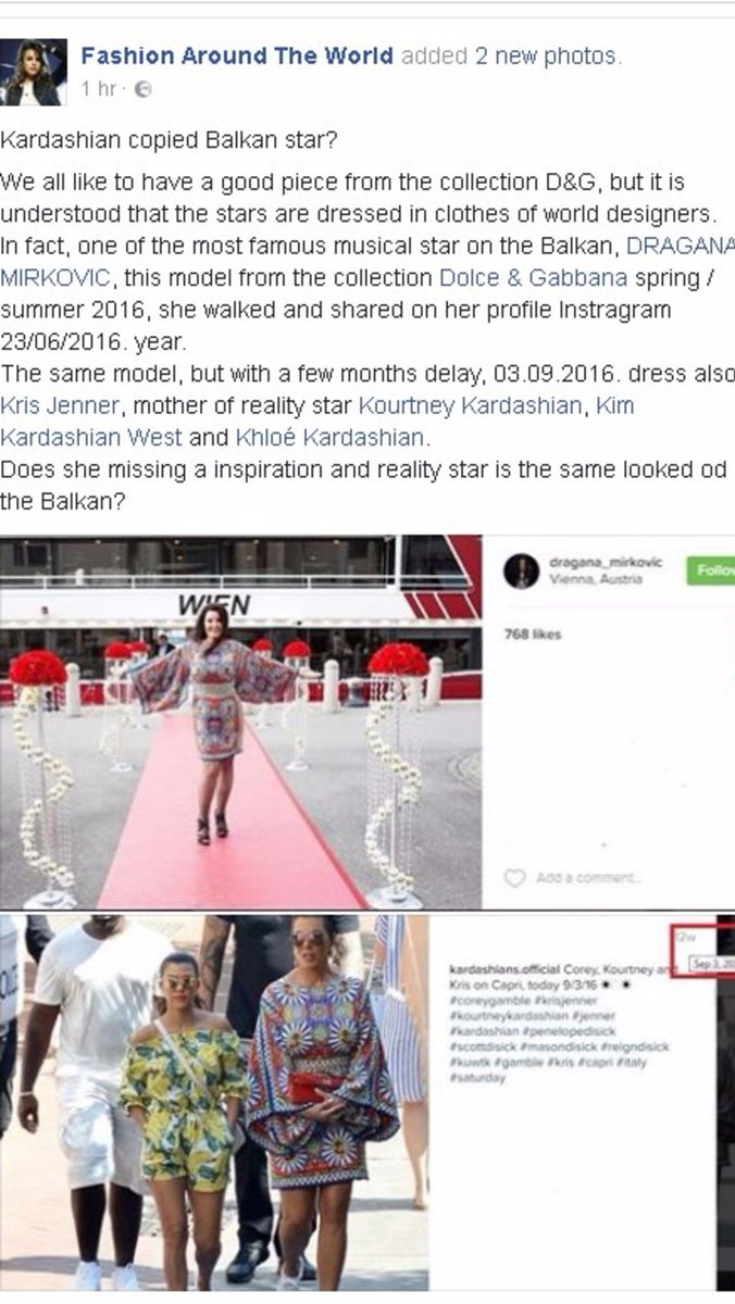 Dragana mnogo pažnje polaže na svoj stil, a da i te kako ima ukusa kada je garderoba u pitanju, pokazuje i to što ju je iskopirala poznata svetska rijalti zvezda.