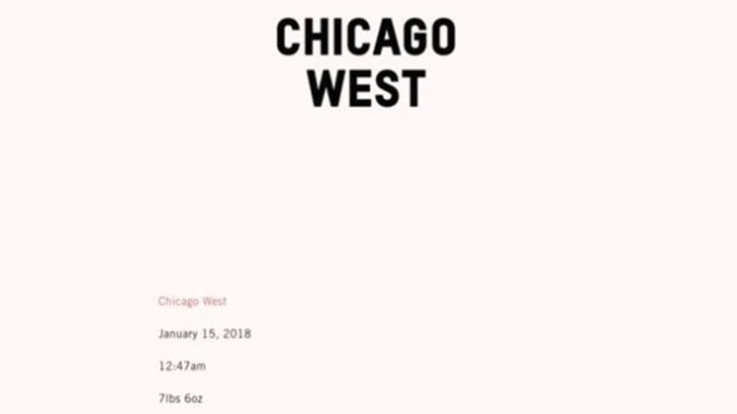 Otkako je objavila vest da je dobila treću bebu, svi su jedva čekali da saznaju kako će se ona zvati, s obzirom na to da je poznato da bira veoma čudna imena, pa se tako njeno prvo dete zove Nort (Sever), dok je sinu dala ime Seint (Svetac). Tako je svoje treće dete, ćerku, odlučila da nazove Čikago, što je objavila na svom sajtu.