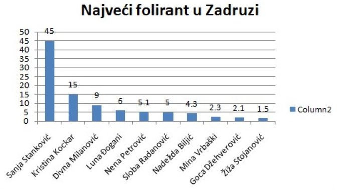 Gledaoci su, evidentno, glasali malo drugačije od zadrugara, pa osim što su Sanju stavili na prvo mesto, Kija se našla na drugom, na trećem Divna Milanović, na četvrtom Luna Đogani a na petom Nena Petrović. Ko se našao na prvih 10 mesta, pogledajte na grafikonu ispod: