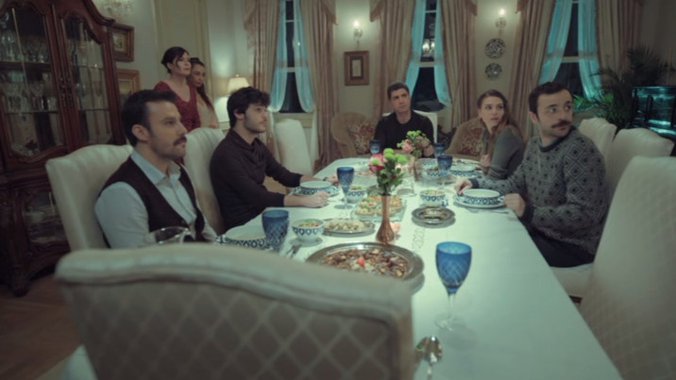 Kada Sureja i Faruk siđu na večeru, njegova dva brata Fikret i Murat se upoznaju sa snajom i svi sedaju za sto, očekujući silazak majke.