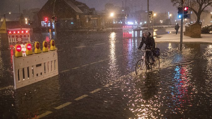 Severoistočnu obalu Nemačke pogodio je olujni talas koji je izazvao najgore poplave na tom području od 2006. godine, dok se severna Poljska našla na udaru snažne mećave koja je blokirala aerodrom u Gdanjsku i mnoga domaćinstva ostavila bez struje.
