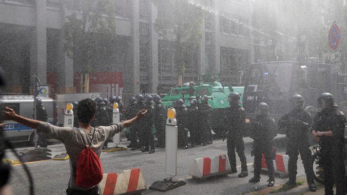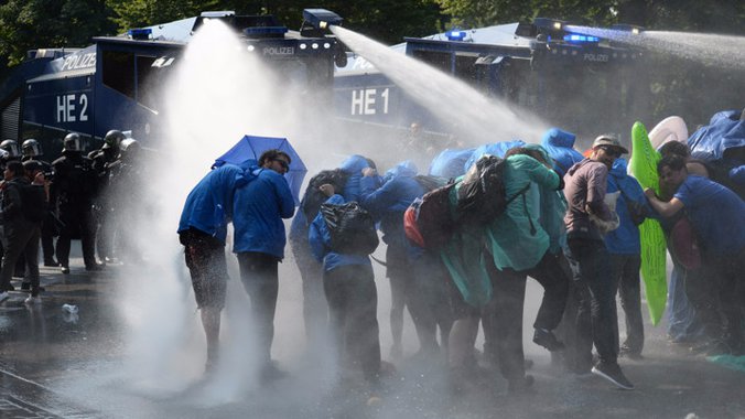Blumberg navodi da je Hamburg, lučki grad od 1,7 miliona pod opsadom, a da organizatori današnjih demonstracija optužuju lidere G20 da su odgovorni za "humanitarnu i društvenu katastrofu" i pozivaju na nenasilni protest.