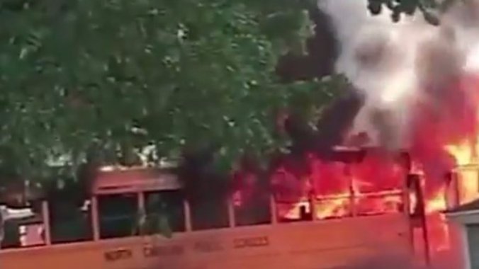 Uznemirujući video snimljen nekoliko minuta pošto su učenici izašli iz autobusa pokazuje celu prednju polovinu autobusa u plamenu, prenosi Ej-Bi-Si njuz.