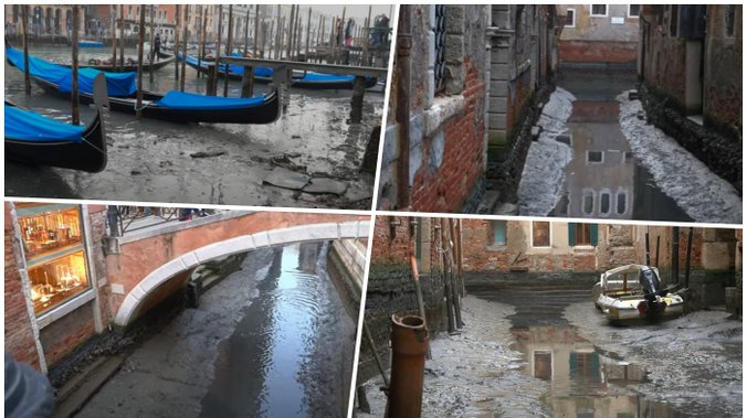 Neki od sekundarnih kanala u Veneciji skoro su presušili u proteklih nekoliko dana, a fotografije i snimci usidrenih vodenih taksija, gondola i čamaca hitne pomoći privukli su veliku pažnju na društvenim mrežama.