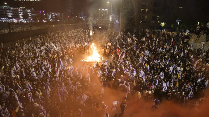 Na snimcima Rojtersove televizije vidi se da hiljade građana blokiraju glavni autoput u Tel Avivu, kao i grupa demonstranata koja pali lomaču nasred autoputa.