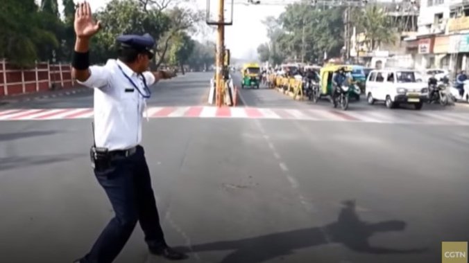 Saobraćajac u indijskom gradu Indor došao je na ideju da gužvu u saobraćaju reguliše izvođenjem čuvenog plesa "Moonwalk" kao pop zvezda Makl Džekson, čiji je obožavatelj.