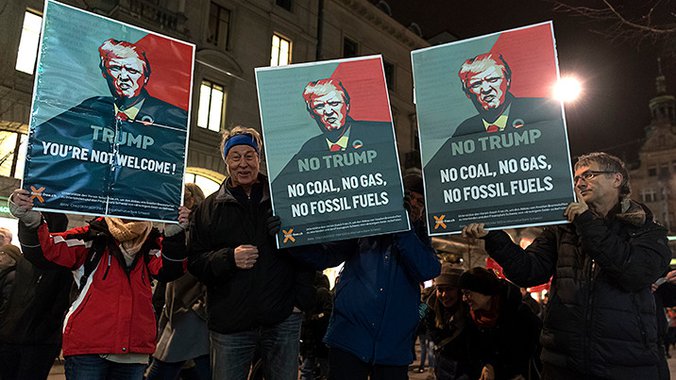 Levičari su organizovali proteste pod motom "Tramp nije dobrodošao" i "Razbijte WEF", prenosi Rojters.