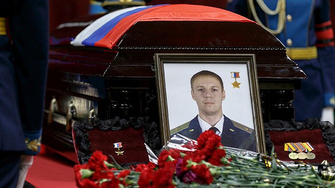 Oko 30.000 ljudi prisustvovalo je danas komemoraciji i sahrani ruskog pilota čiji je avion oboren nad severnom sirijskom provincijom Idlib.
