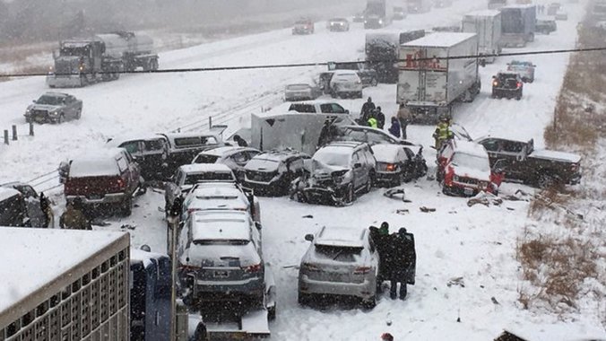 Policija Minesote je saopštila da je ledeno vreme uticalo da dođe do 400 sudara i 250 okretanja automobila na putu, uključujući dve fatalne nesreće.