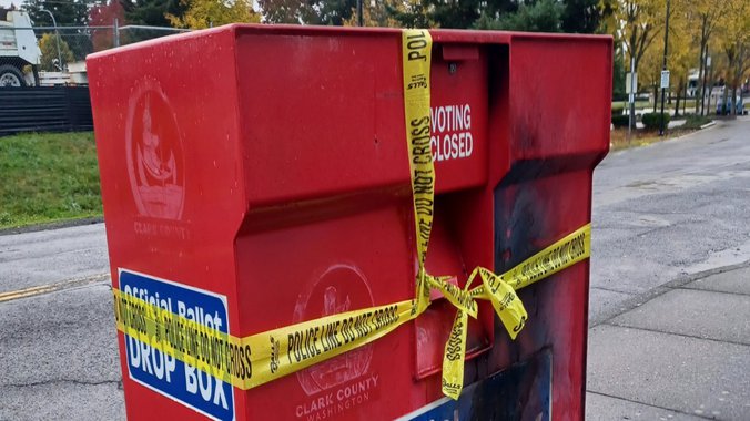 Election interference in Clark County Washington, or a prank? Ballot drop box set on fire, no word yet as to the cause.