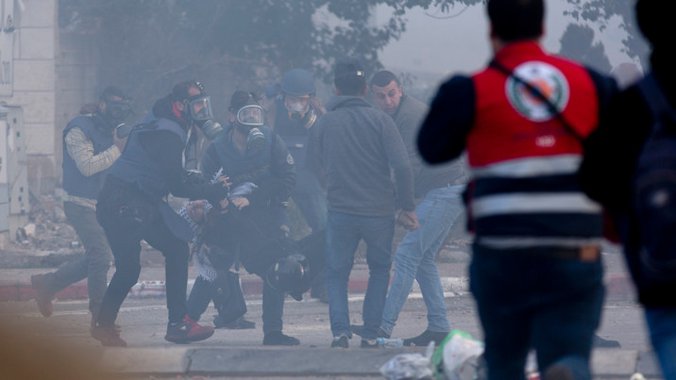 U saopštenju izdatom ranije danas je navedeno da su Palestinci kotrljali upaljene gume i bacali kamanje na izraelske vojnike, koji su uzvratili suzavcem i vatrom prema "najvećim podstrekačima".
