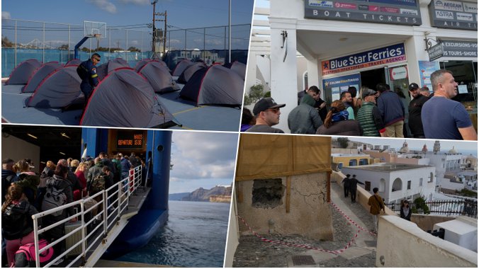 Naučnici i seizmolozi proučavajući neprestano seizmičke aktivnosti u blizini obale Santorinija, jer su stanovnici koji su još na ostrvu u panici. Više od 12.000 stanovnika Santorinija napustilo je svoje domove dok se zemlja i dalje neprestano trese.