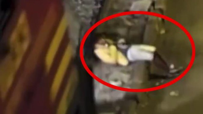 Na snimku sa nadzornih kamera vidi se kako nepomično leži pre nego što ga spori teretni voz udara.