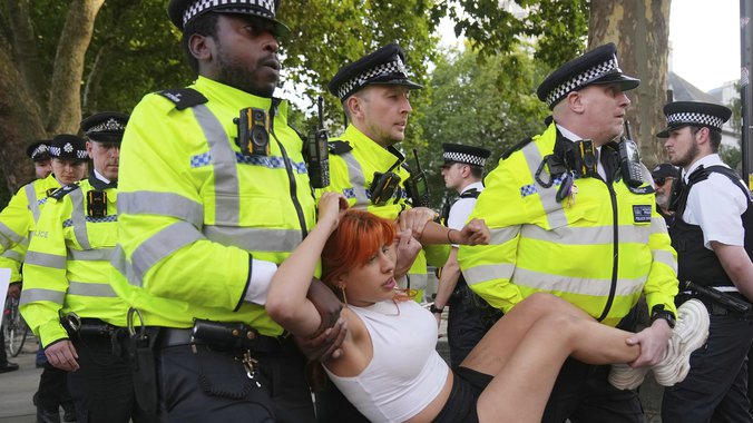Sa druge strane, organizatori protesta u Londonu optužuju policiju za preterano korišćenje sile, čak i prema mirnim učesnicima, uključujući starije osobe.