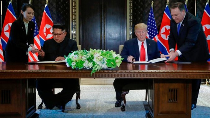 Tramp je najavio, posle radnog ručka koji je imao sa severnokorejskim vođom, da njih dvojica idu na "potpisivanje", a neimenovani američki zvaničnik objasnio je za "Si-En-En" da se radi o "sporazumu kojim se potvrđuje napredak u razgovorima i obećanje da se nastavi istim tempom".