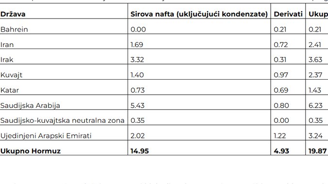 Pošto znamo da je pre rata kroz Ormuski prolaz prolazilo oko 20 miliona barela dnevno, sada treba da vidimo kolika količina nafte može da pronađe alternativne pravce kako bi se omogućilo normalno snabdevanje.