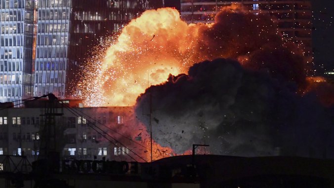 Implozija se dogodila nekoliko minuta nakon što su pri vrhu zgrade aktivirani efekti nalik vatrometu u plavim i ružičastim nijansama.