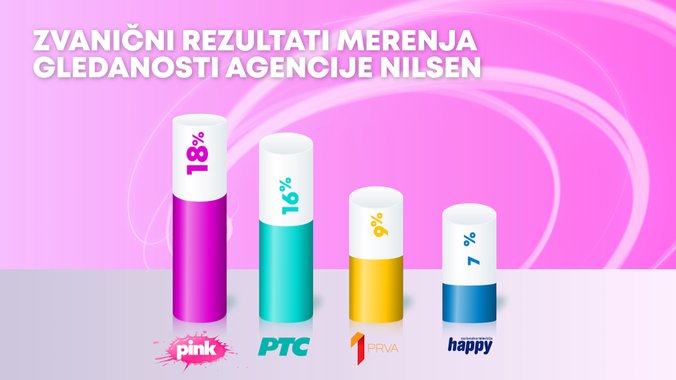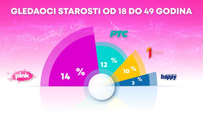 Televizija Pink bila je gledanija od svih komercijalnih emitera, ali i Javnog servisa Srbije u totalu, među ženskom publikom, među gledaocima starosti od 18 do 49 godina, među ženskom publikom starosti od 18 do 49 godina, među gledaocima iz Beograda starosti od 18 do 49 godina, kao i među urbanom populacijom.