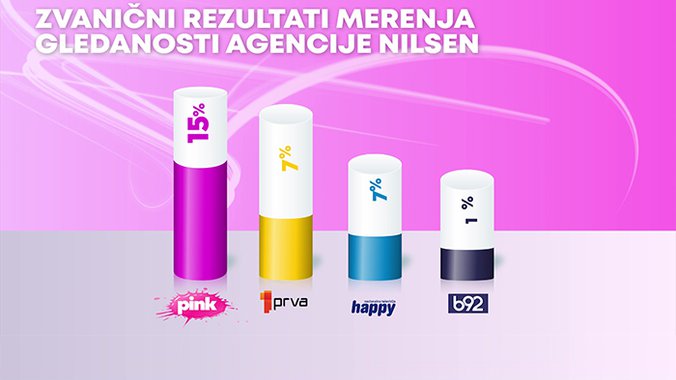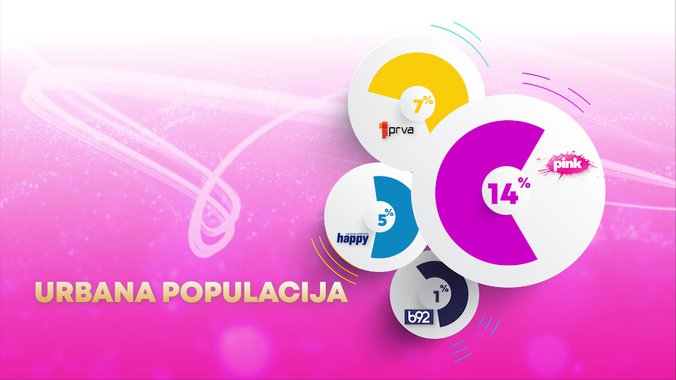 Televizija Pink je od svih komercijalnih emitera bila gledanija u totalu, među gledaocima starosti od 18 do 49 godina, među ženskom publikom starosti od 18 do 49 godina, među gledaocima iz prestonice starosti od 18 do 49 godina i među urbanom populacijom, dok je i od Javnog servisa Srbije bila gledanija među ženskom publikom, kao i među gledaocima sa teritorije Beograda.