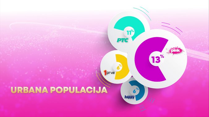 Televizija Pink je od svih komercijalnih emitera, ali i Javnog servisa Srbije bila gledanija u totalu.... gledanija među ženskom publikom...... među gledaocima starosti od 18 do 49 godina.... među ženskom publikom starosti od 18 do 49 godina......