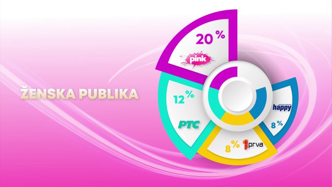 Televizija Pink je od svih komercijalnih emitera, ali i Javnog servisa Srbije bila gledanija u totalu.... među ženskom publikom..... među gledaocima sa teritorije Beograda...... među gledaocima iz prestonice starosti od 18 do 49 godina....