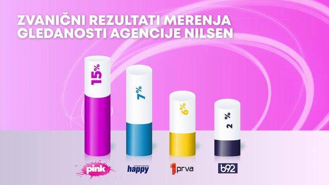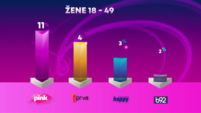Televizija Pink je od svih komercijalnih emitera bila gledanija u totalu.... među gledaocima starosti od 18 do 49 godina......