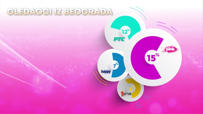 Televizija Pink je od svih komercijalnih emitera, ali i Javnog servisa Srbije bila gledanija u totalu, među ženskom publikom, među gledaocima sa teritorije Beograda, među gledaocima iz prestonice starosti od 18 do 49 godina i među urbanom populacijom, dok je od komercijalnih televizija bila gledanija među gledaocima starosti od 18 do 49 godina kao i među ženskom publikom starosti od 18 do 49 godina.