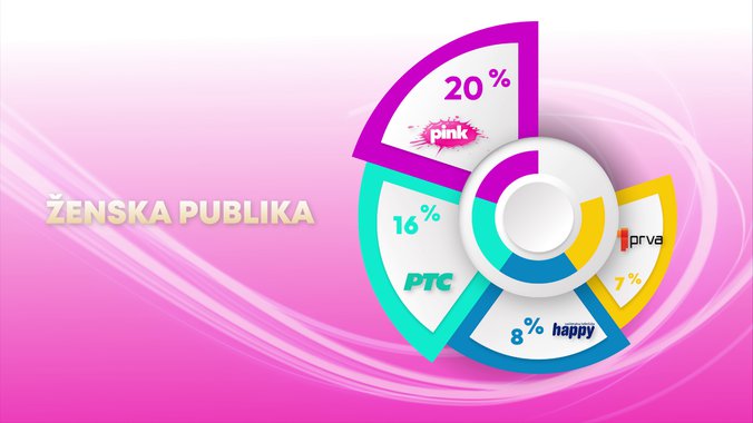 Televizija Pink je od svih komercijalnih emitera bila gledanija u totalu..... među gledaocima starosti od 18 do 49 godina.... među ženskom publikom starosti od 18 do 49 godina..... među gledaocima sa teritorije Beograda..... među gledaocima iz prestonice starosti od 18 do 49 godina.... i među urbanom populacijom, dok je i od Javnog servisa Srbije bila gledanija među ženskom publikom.
