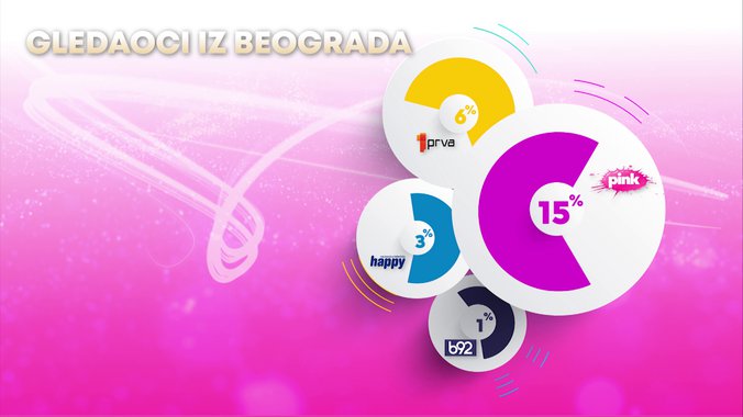 Televizija Pink je od svih komercijalnih emitera, ali i Javnog servisa Srbije bila gledanija u totalu, među ženskom publikom i među urbanom populacijom, dok je od komercijalnih televizija bila gledanija među gledaocima starosti od 18 do 49 godina, među ženskom publikom starosti od 18 do 49 godina, među publikom sa teritorije Beograda, kao i među gledaocima iz prestonice starosti od 18 do 49 godina.