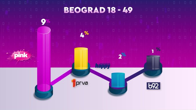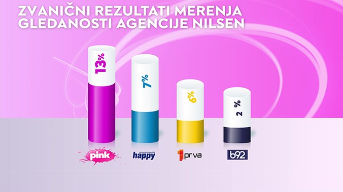 Televizija Pink je od svih komercijalnih emitera bila gledanija u totalu.... među gledaocima starosti od 18 do 49 godina…..