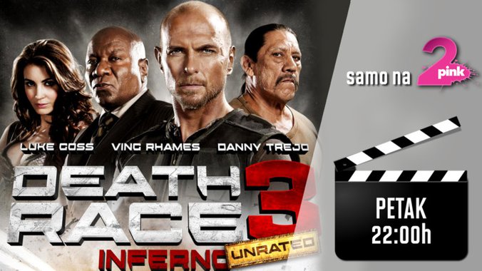 U trećem delu filmskog serijala “Trka smrti 3: Pakao” (eng. Death Race: Inferno) iz 2013. godine, koji je večeras u 22 časova na Pink 2, reditelj Roel Reini uveo je više akcije i specijalnih efekata nego u prethodnim delovima. U glavnoj ulozi ponovo je Luk Gos, a uz njega su i Ving Rejms, Deni Trežo, Dagrej Skot, Tanit Finiks, Robin Šou...