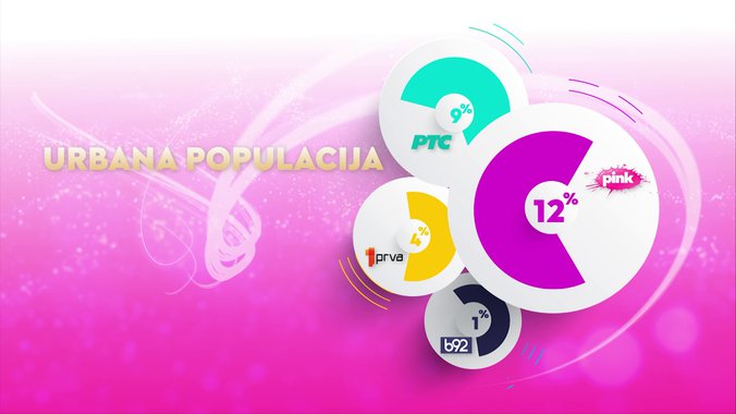 Televizija Pink je od svih komercijalnih emitera, ali i Javnog servisa Srbije bila gledanija u totalu, među ženskom publikom, među gledaocima starosti od 18 do 49 godina, među ženskom publikom starosti od 18 do 49 godina, među gledaocima sa teritorije Beograda, među gledaocima iz prestonice starosti od 18 do 49 godina, kao i među urbanom populacijom.