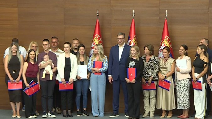 Predsednik Srbije Aleksandar Vučić uručuje ugovore o zapošljavanju zdravstvenim radnicima koji se vraćaju iz dijaspore – 16 odsto televizijskog auditorijuma