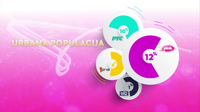 Televizija Pink je od svih komercijalnih emitera, ali i Javnog servisa Srbije bila gledanija u totalu..... među ženskom publikom.... među gledaocima starosti od 18 do 49 godina.... među ženskom publikom starosti od 18 do 49 godina.... među gledaocima sa teritorije Beograda..... među gledaocima iz prestonice starosti od 18 do 49 godina.... kao i među urbanom populacijom.