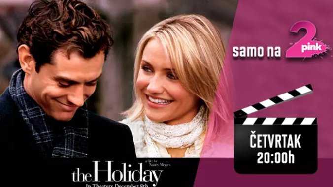 Iz pera i u režiji iskusne filmske radnice Nensi Majers, 2006. godine je nastala romantična komedija “Praznici i ljubav” (eng. Holiday), koja je pred gledaocima Pink 2 večeras u 20 časova. U glavnim ulogama ove priče o ženama i njihovim ljubavnim zgodama i nezgodama su dve holivudske dive – Kameron Dijaz i oskarovka Kejt Vinslet. Njihov svet okružen je jačim polom, a njih tumače: Džad Lou, Džek Blek, Eli Volah, Edvard Barns, Rufus Sjuel, Džon Krasinski...