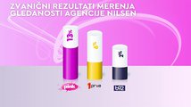 Televizija Pink je od svih komercijalnih emitera bila gledanija u totalu, među gledaocima starosti od 18 do 49 godina i među urbanom populacijom, dok je i od Javnog servisa Srbije bila gledanija među ženskom publikom, među ženskom publikom starosti od 18 do 49 godina, među gledaocima sa teritorije Beograda, među gledaocima iz prestonice starosti od 18 do 49 godina i među urbanom populacijom.