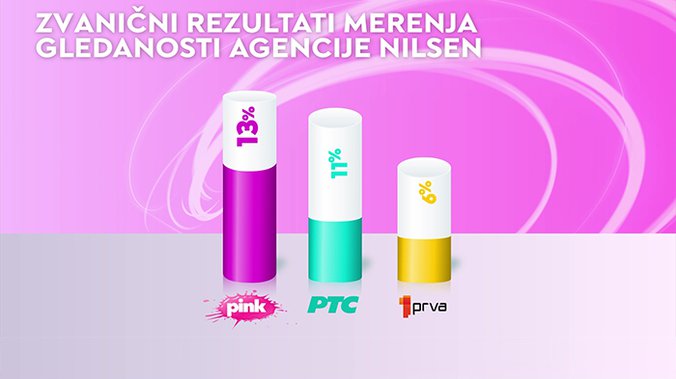 Televizija Pink je od svih komercijalnih emitera, ali i Javnog servisa Srbije bila gledanija u totalu.... među ženskom publikom…. među gledaocima starosti od 18 do 49 godina…. među ženskom publikom starosti od 18 do 49 godina.... među gledaocima sa teritorije Beograda.... među gledaocima iz prestonice starosti od 18 do 49 godina…. kao i među urbanom populacijom.