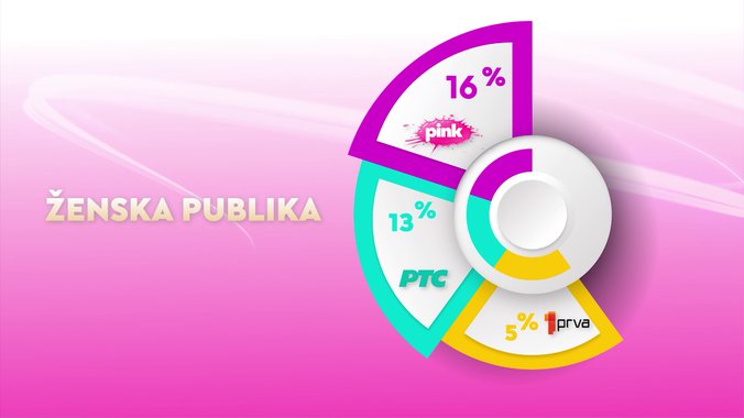 Televizija Pink je od svih komercijalnih emitera, ali i Javnog servisa Srbije bila gledanija u totalu, među ženskom publikom, među ženskom publikom starosti od 18 do 49 godina, među gledaocima sa teritorije Beograda i među gledaocima iz prestonice starosti od 18 do 49 godina, dok je od svih komercijalnih televizija bila gledanija među gledaocima starosti od 18 do 49 godina, kao i među urbanom populacijom.