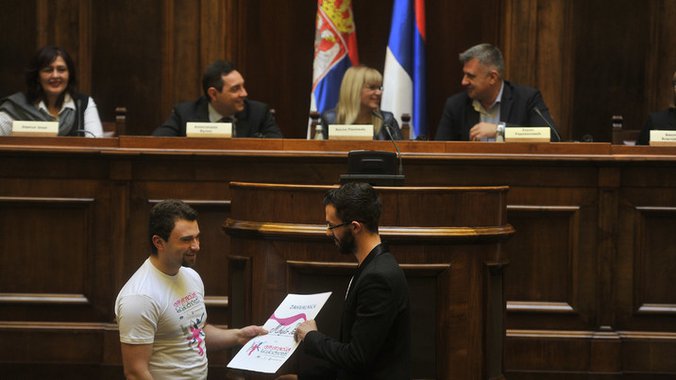 Polaznici projekta su na kraju konferencije u Skupštini Srbije uručili zahvalnice predstavnicima medija, među kojima i novinaru TV Pink Mihajlu Paviću za podršku u sprovođenju projekta i tako podigli svest javnosti o nezavidnom položaju dece bez roditeljskog staranja.