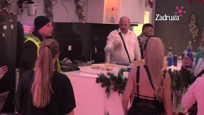 Čim je obezbeđenje onelo korpu sa pićima, zadrugari su se zaleteli i počeli jedni preko drugih da uzimaju, zbog čega je došlo do prepucavanja između Miljane Popović i Bojana Simića, ali se i brzo završilo.