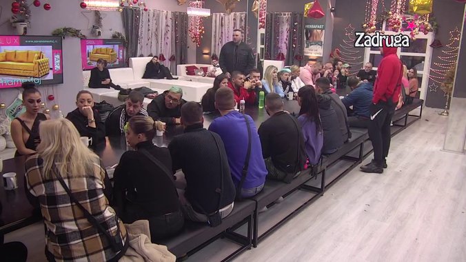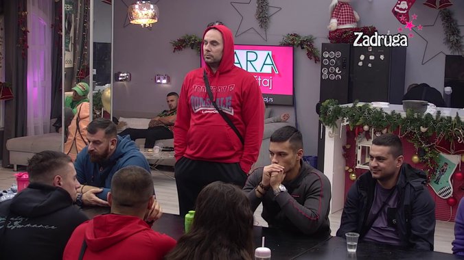 U toku je emisija "Nominacije". Jedno preko puta drugog se nalaze Zvezdan Slavnić i Aleks Nikolić, a zadrugari iznose mišljenje o oboma i odlučuju koga žele da ostave u Beloj kući.